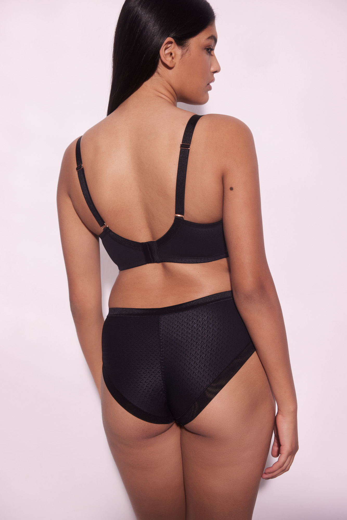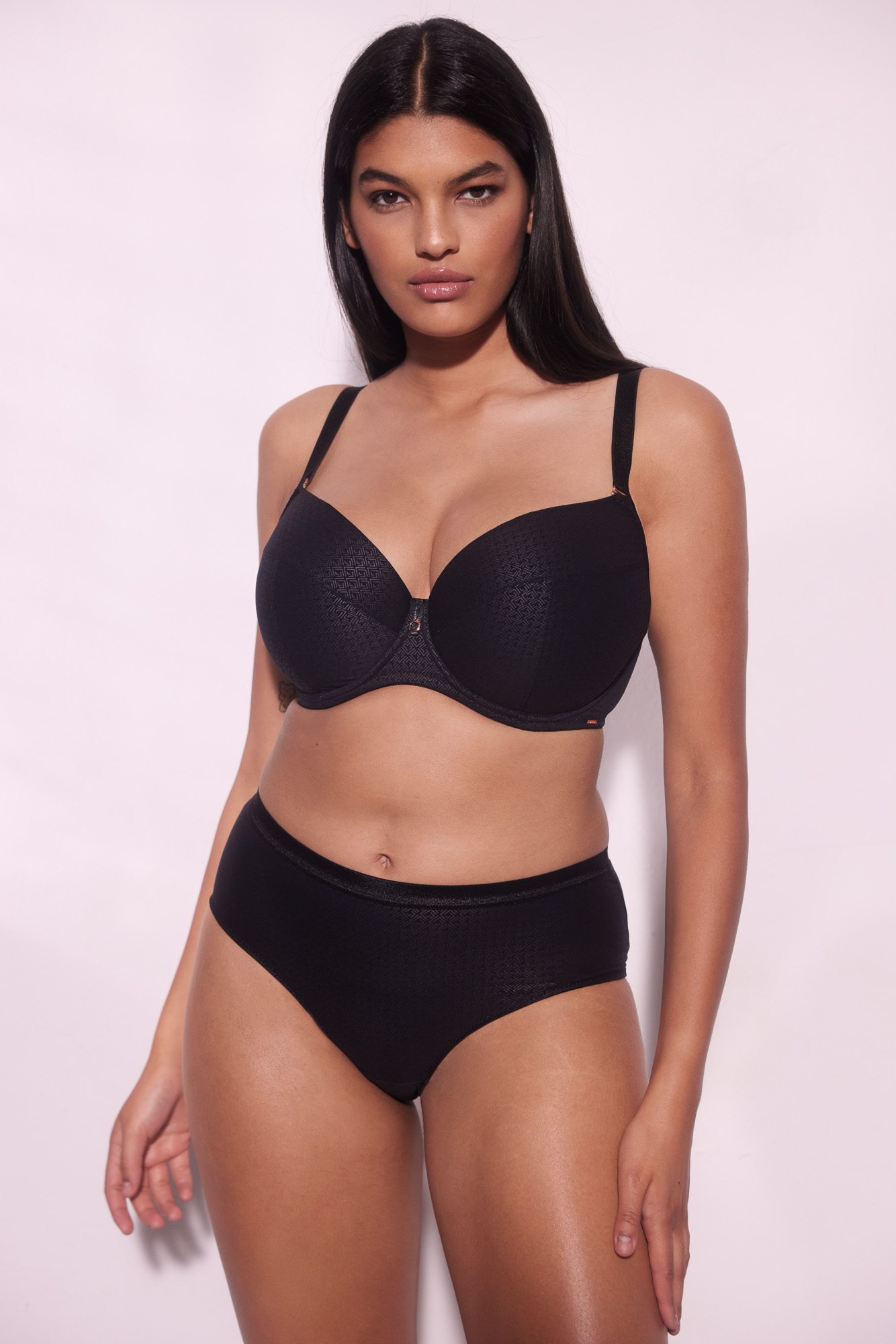 Бюстгальтер гладкий выполнен на основе модели 04 , на косточках, чашки шитые на тонком поролоне, внутренняя сторона проложена хлопковым трикотажем, внешняя сторона чашек и пояс из трикотажа с тиснением по типу жаккард. Бретельки отстгиваются, регулируются по длине, на спине можно перекрещивать, на спине удлинитель на крючках. Фурнитура металлическая цвета меди.Diamante U бюст (черн)