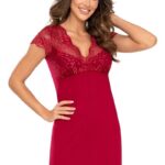 Нежная вискозная сорочка DORIS от европейского производителя Donna. Модель с кружевным вырезом в зоне декольте и коротким кружевным рукавом.DORIS Сорочка женская