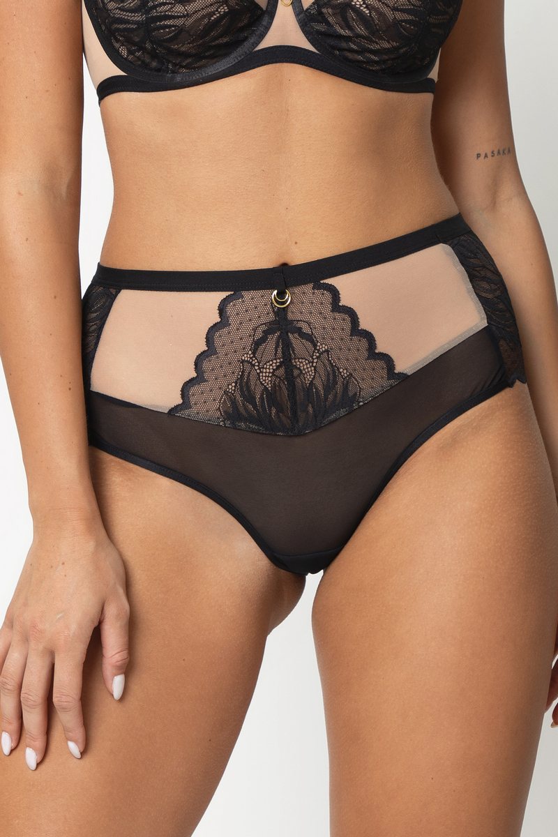 Трусы с высокой посадкой ELZA от европейского производителя Subtille. Модель выполнена из эластичного кружева и микросетки. Хлопковая ластовица.