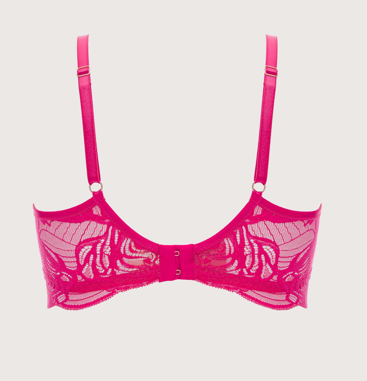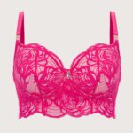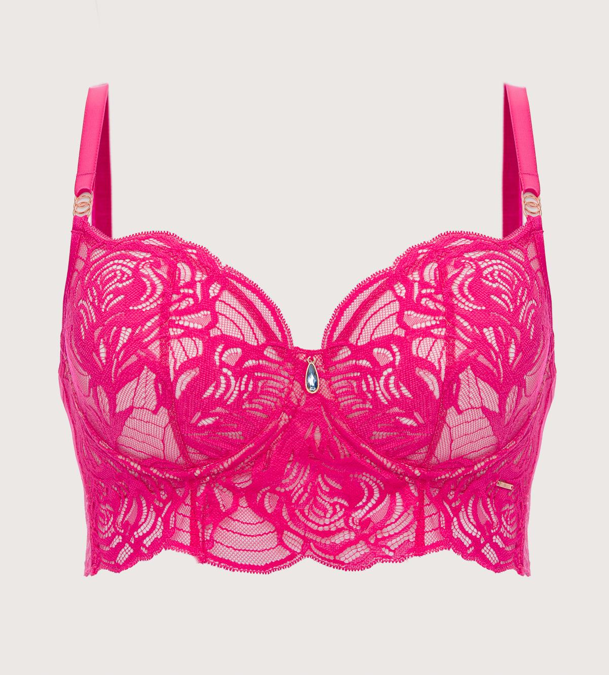 Бюстгальтер выполнен на основе бюста с мягкими чашечками на косточках, чашки шитые из кружева. Пояс бюстгальтера кружевной, по нижнему краю широкий, с дополнительными боковыми поддержками, визуально вытягивает силуэт. Бретельки регулируются по длине, не отстгиваются. Между чашек продолговатое украшение с кристаллом цвета сапфира. Фурнитура металлическая цвета розового золота. На спине застжка на удлинитель. Бюстгальтер идеально сочетается с трусиками из коллекции . Глубокий амарант пульсирует энергией и чувственностью, сливаясь с ажурным кружевом с гипнотическими абстрактными цветочными узорами.EuphoricRouge M Longline бюст