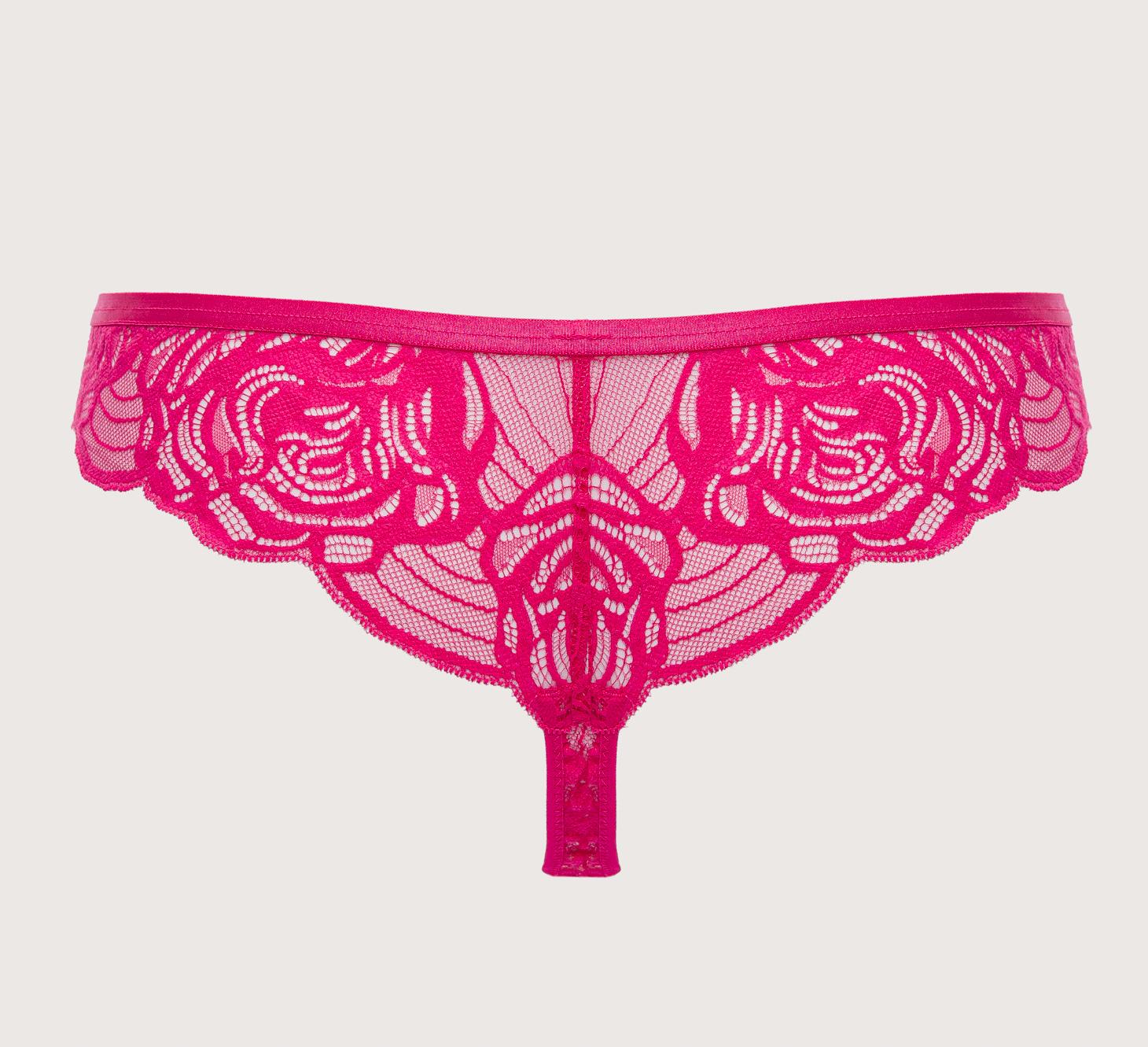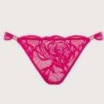 Трусики стринг из коллекции выполнены из роскошного кружева, по бокам металлические кольца цвета розового золота. Ластовица проложена 100 хлопкомтелесного цвета. Глубокий амарант пульсирует энергией и чувственностью, сливаясь с ажурным кружевом с гипнотическими абстрактными цветочными узорами.