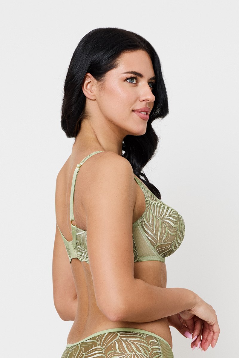 Бюстгальтер FLORANCE от европейского производителя Subtille. Мягкая чашка на кости, конструкция чашки S-01 мягкая чашка с Т-образным кроем более открытая форма. Несъемные регулируемые бретели. Выполнен из микросетки и кружева. Золотые детали. Фирменный логотип Subtille.FLORANCE Soft Бюст