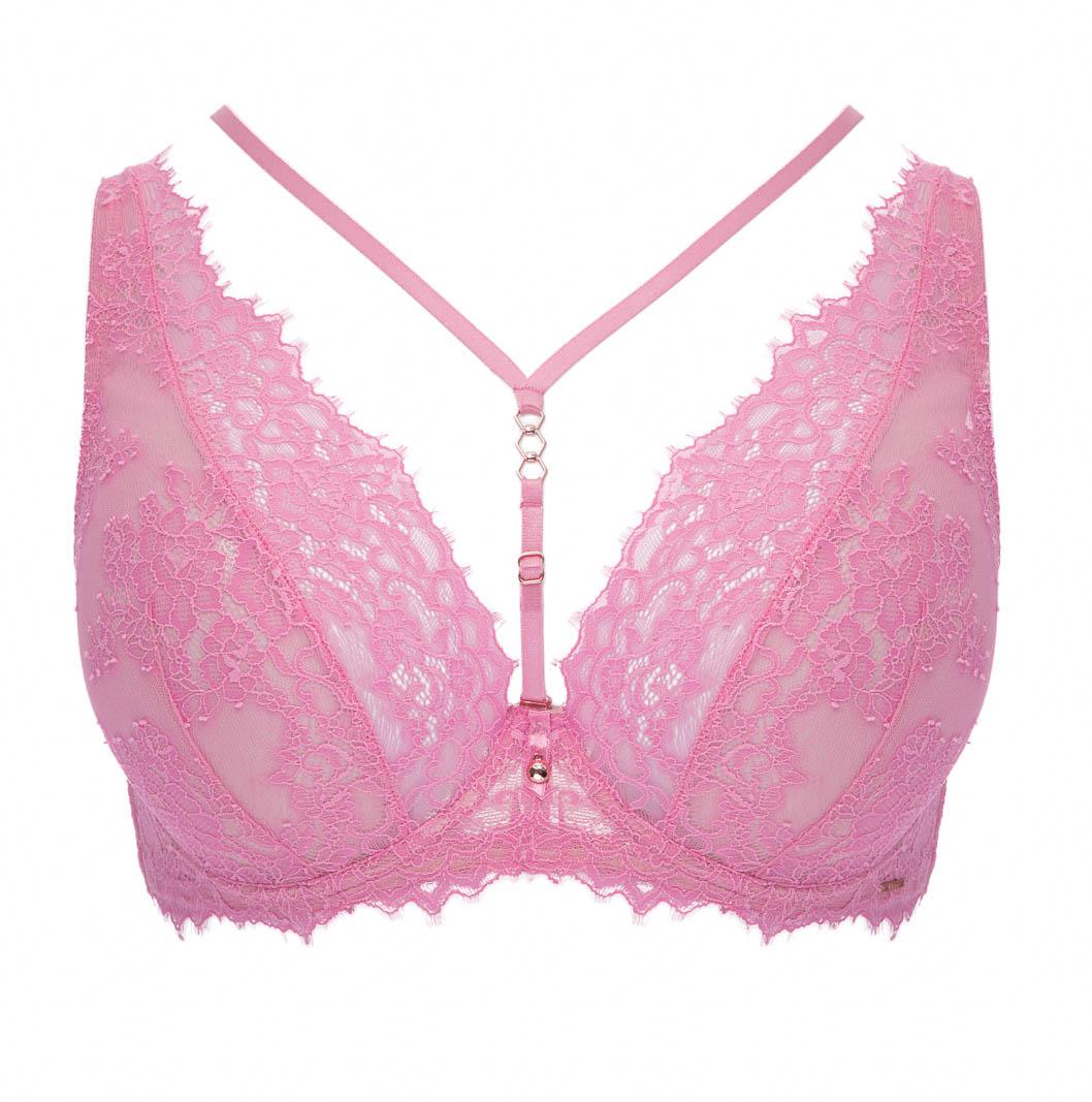 Бюстгальтер-бралетт из коллекции выполнен на основе бюста , с мягкими чашечками на косточках, чашки шитые из кружева, продублированы сеткой. Бретельки регулируются по длине, не отстгиваются. На спине застжка на удлинитель, количество крючков в ряду застжки увеличивается пропорционально размеру бюстгальтера, фурнитура металлическая цвета розового золота. В зоне декольте дополнительные съемные тонкие бретели, регулируемые по длине. Бюстгальтер идеально сочетается с трусиками из коллекции .French Kiss M бралетт бюст