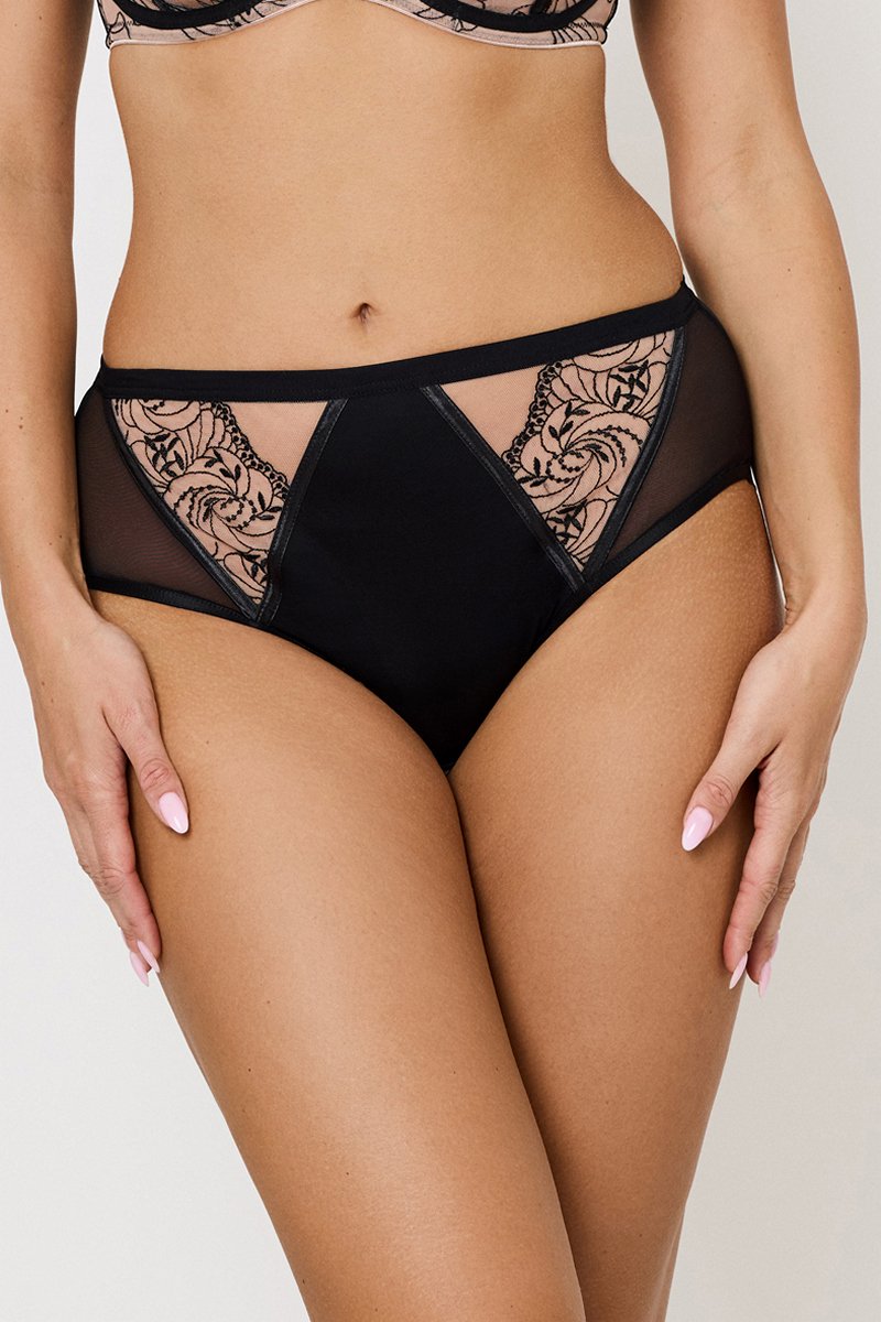 Трусы высокие FREYA от европейского производителя Subtille. Модель выполнена из гладкой микрофибры, микросетки и тюля с вышивкой. Сзади из двойной микросетки. Ластовица хлопковая.FREYA Трусы высокие