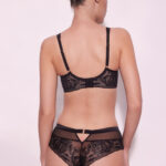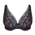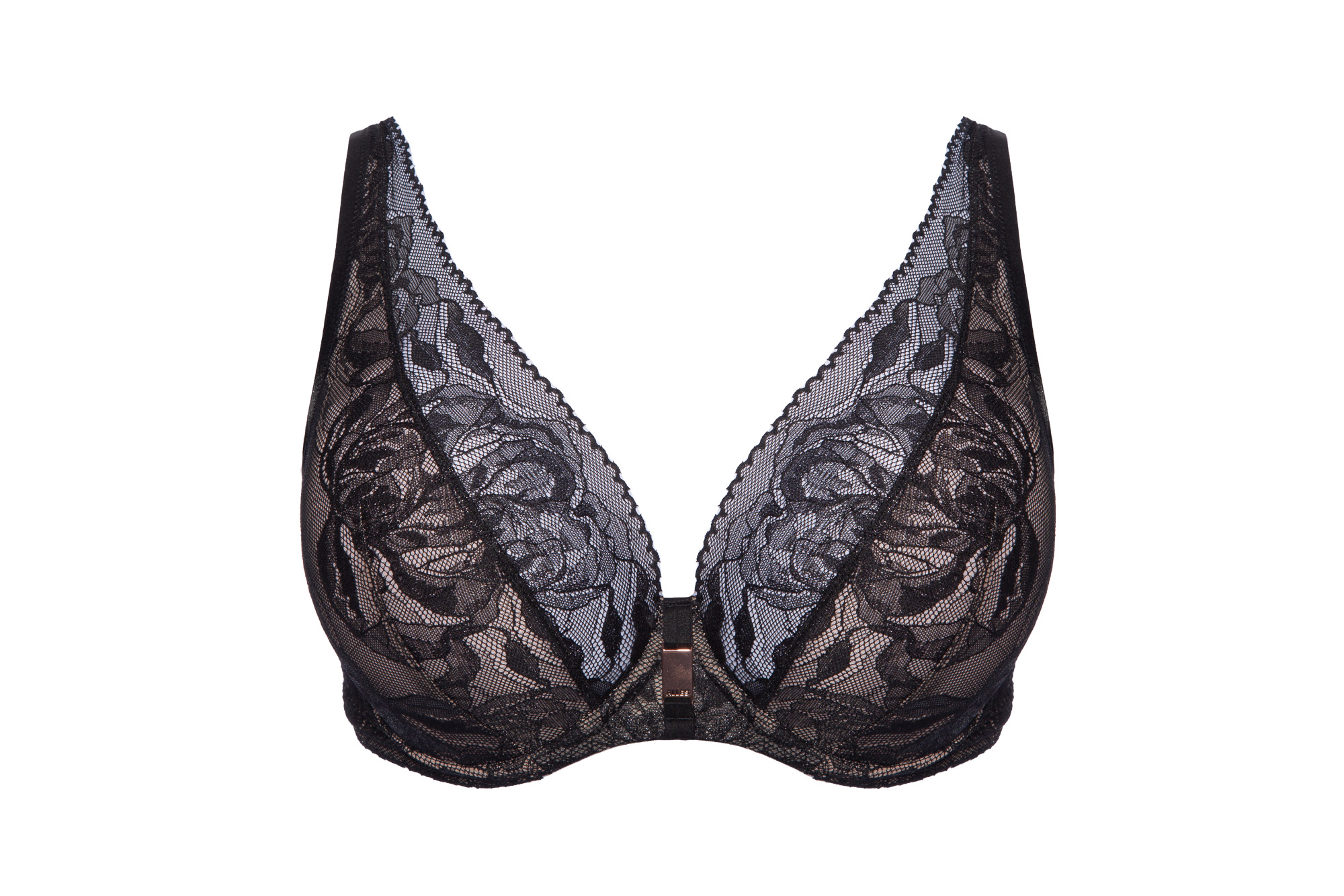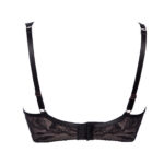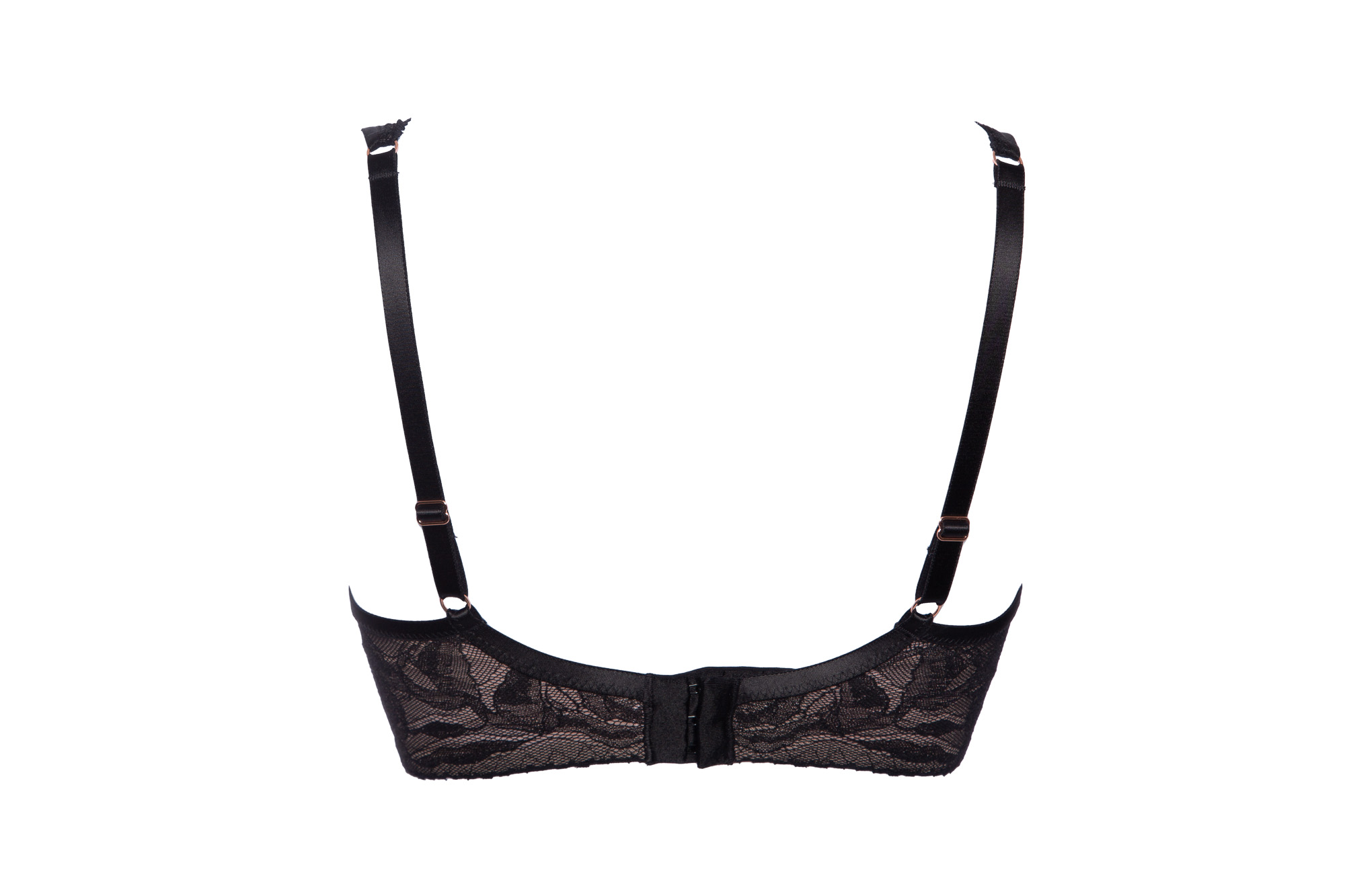Бюстгальтер бралетт из коллекции выполнен с мягкими чашечками на косточках, чашки шитые из нежного кружева с черными цветами, с эффектом мерцания, продублированы телесной сеткой. Пояс из кружева на телесной подкладке из стабилизирующей сеточки. Бретели с эффектом мерцания регулируются по длине, не отстгиваются. На спине застжка на удлинитель, фурнитура металлическая цвета меди. Бюстгальтер идеально сочетается с трусиками из коллекции .Frozen Black M бралетт бюст
