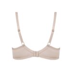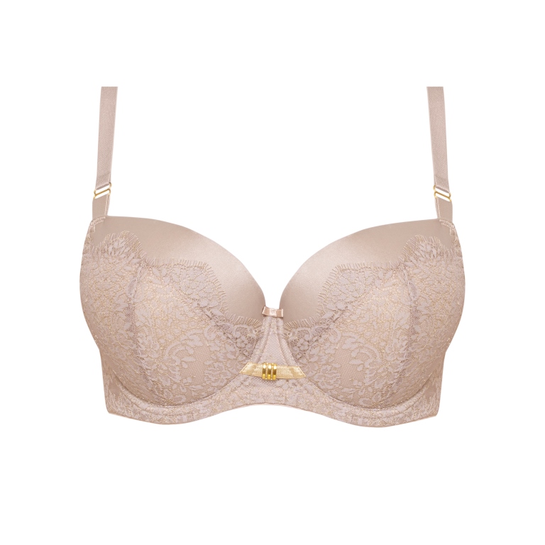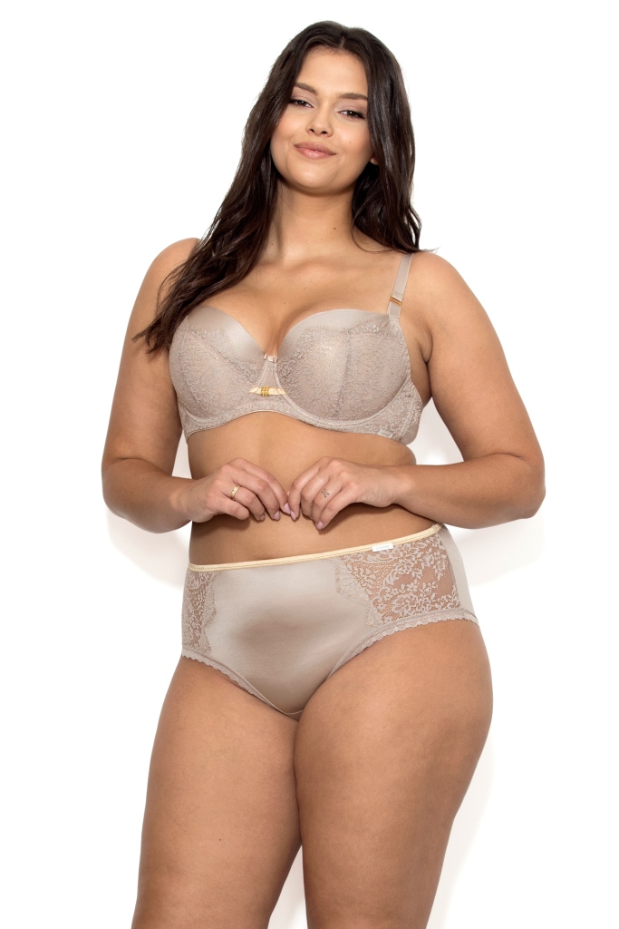 Бюстгальтер на косточках, с дополнительными боковыми поддержками, чашки шитые, на тонком поролоне, с кармашками для съмных пуш-ап вкладышей, внутренняя сторона проложена хлопковым трикотажем, внешняя сторона чашек покрыта кружевом с гипюром. Бретельки не съмные, регулируются по длине. На спине застжка на удлинитель, количество крючков в ряду застжки, увеличивается пропорционально размеру бюстгальтера. Бюстгальтер идеально сочетается с трусиками .