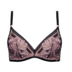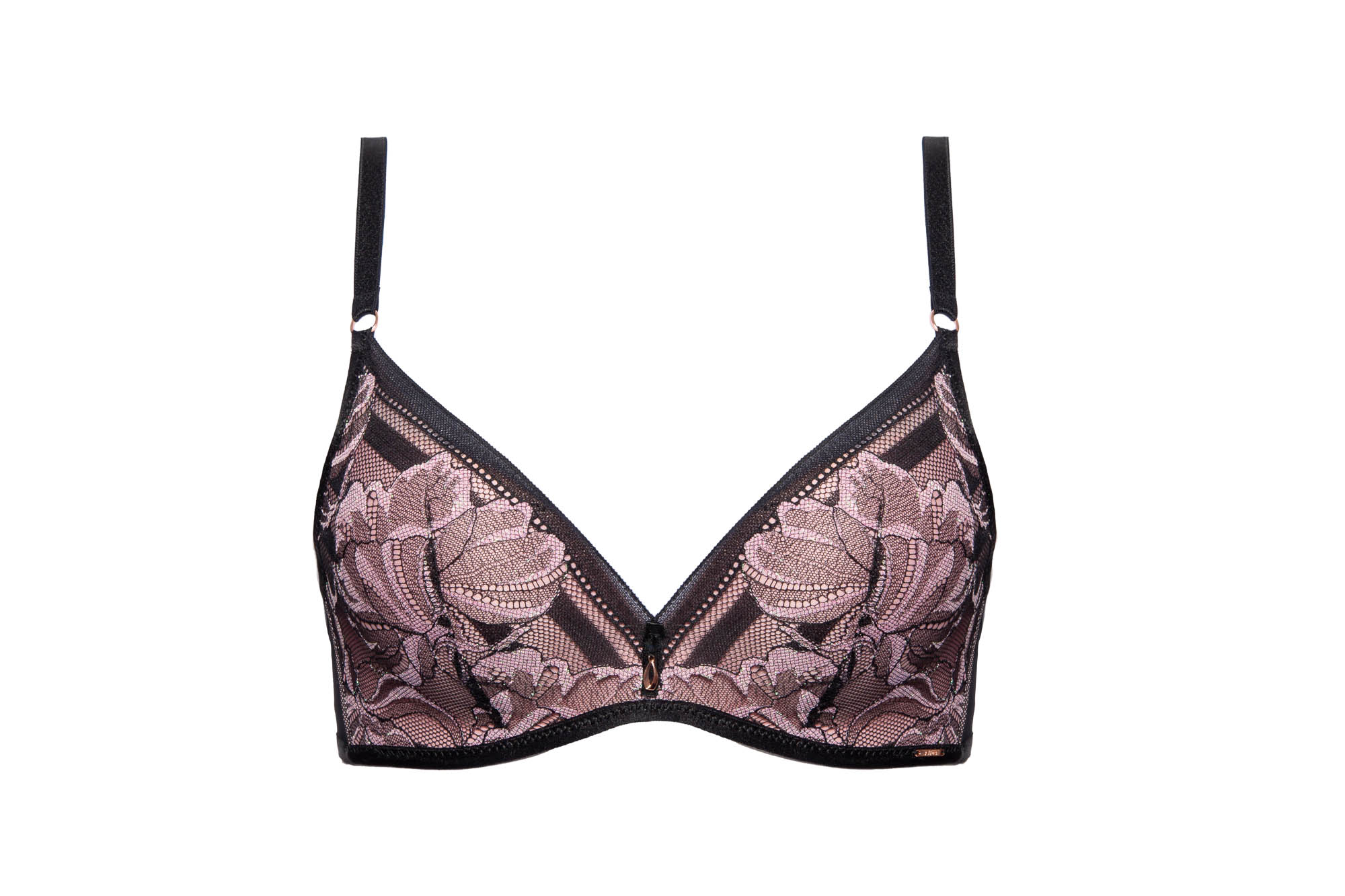 Бюстгальтер из коллекции - выполнен с формованными поролоновыми чашками розового цвета без косточек, покрытыми нежным кружевом с черно-розовыми цветами, с эффектом мерцания, с дополнительными боковыми поддержками для предотвращения скручивания. Бретельки не отстгиваются, регулируются по длине. На спине застжка на удлинитель, количество крючков в ряду застжки увеличивается пропорционально размеру бюстгальтера. Пояс из эластичной черной сетки на контрастной подкладке из стабилизирующей розовой сеточки. Фурнитура металлическая цвета меди. Бюстгальтер идеально сочетается с трусиками из коллекции .