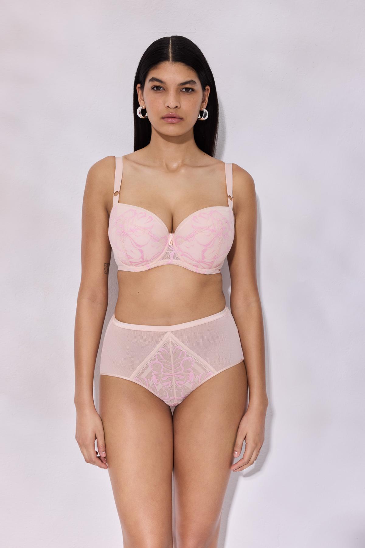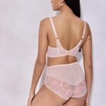 Бюстгальтер / выполнен на косточках, чашки шитые на тонком поролоне, со съмными пуш-ап вкладышами, внешняя сторона покрыта нежным кружевом с розовыми цветами, с эффектом мерцания. Спинка из сетки. Бретельки не отстгиваются, регулируются по длине. На спине застжка на удлинитель, количество крючков в ряду застжки, увеличивается пропорционально размеру бюстгальтера, фурнитура металлическая цвета меди. Бюстгальтер идеально сочетается с трусиками .Glossy Iris U/W бюст (телесн)
