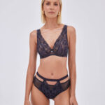 Бюстгальтер бралетт из коллекции выполнен с мягкими чашечками на косточках на каркасах, чашки шитые из роскошного кружева с цветочным рисунком и легким мерцающим эффектом, продублированы телесной сеткой. Бретельки регулируются по длине, отстгиваются на спине. На спине застжка на удлинитель, количество крючков в ряду застжки увеличивается пропорционально размеру бюстгальтера, пояс кружевной продублирован сетчатой телесной тканью. Фурнитура металлическая цвета розового золота. Между чашек украшение в виде красивой подвески и атласной ленты. Бюстгальтер идеально сочетается с трусиками из коллекции .Glow M бралетт бюст (синий)