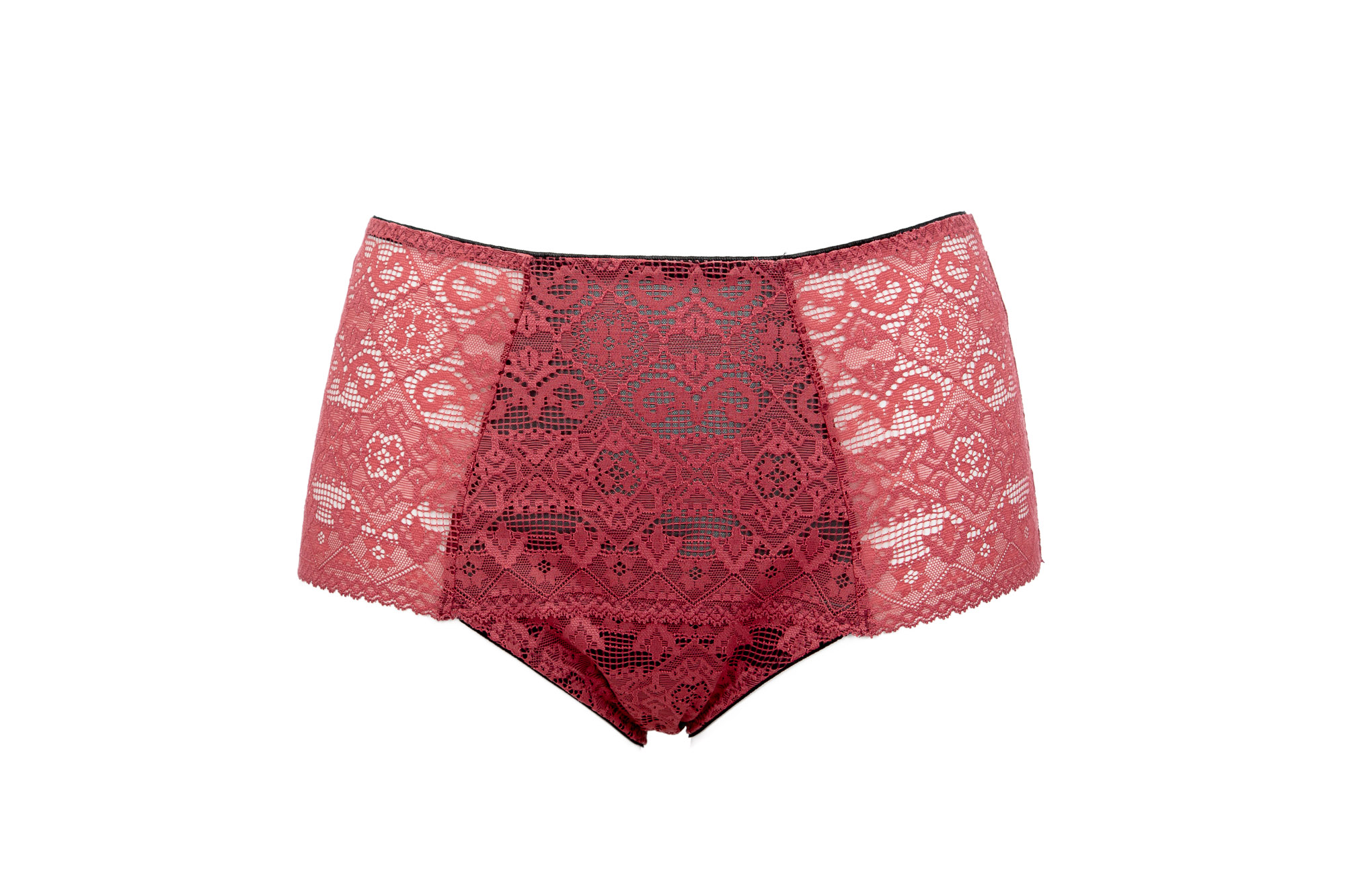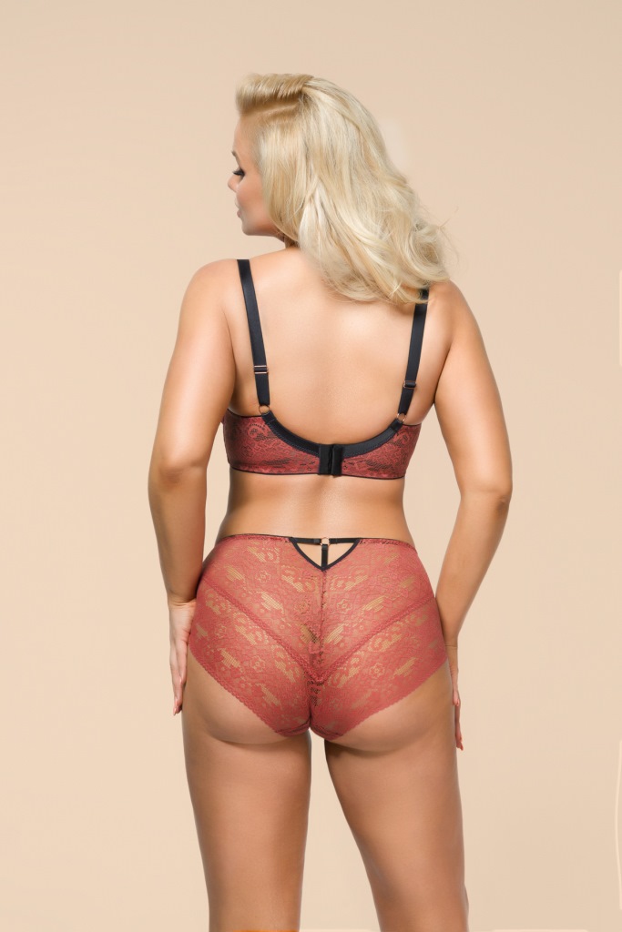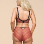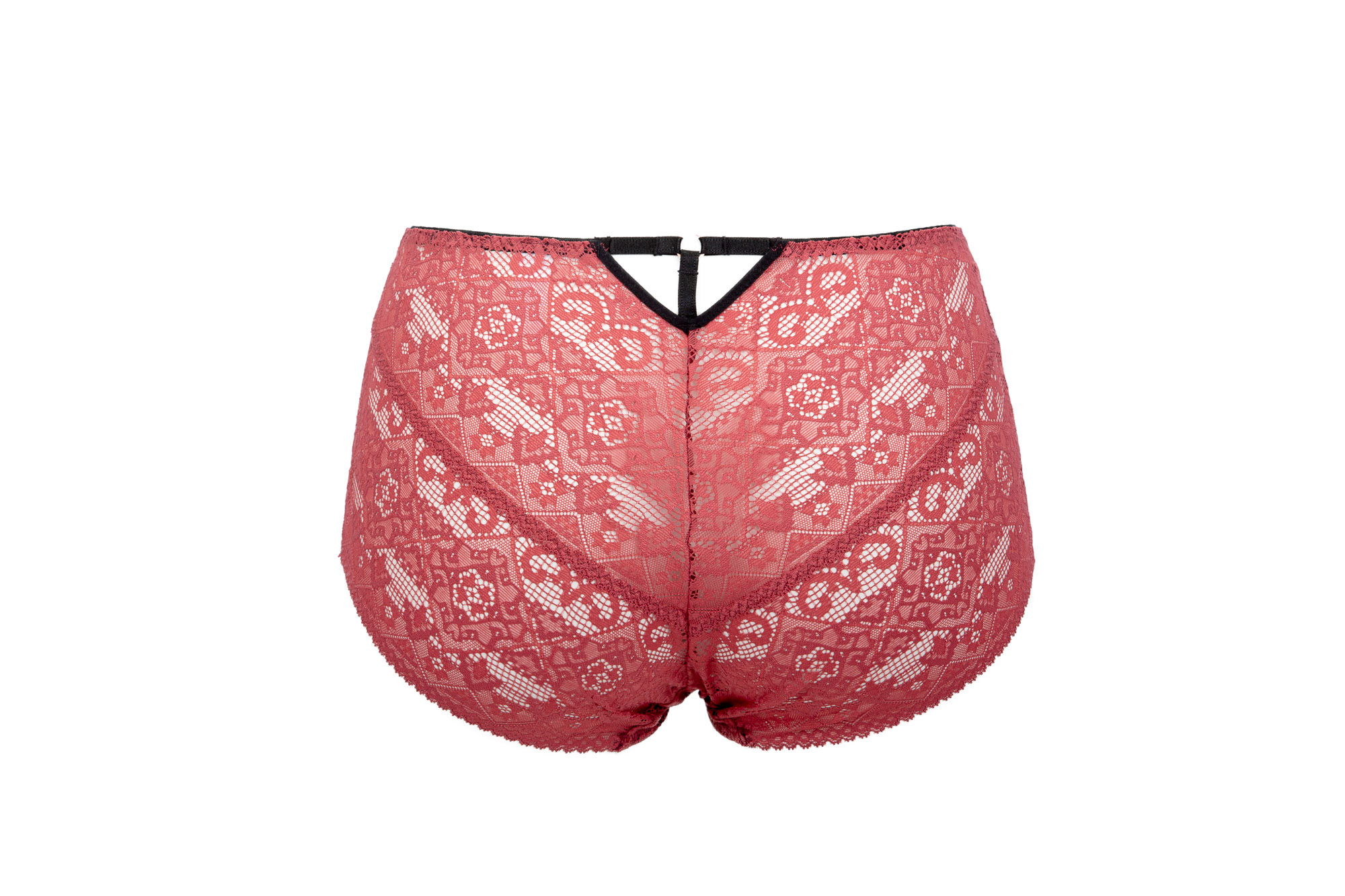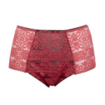 Трусики классические с высокой талией, из коллекции из кружевного полотна, спереди продублированы черной сеткой, на спинке -образный вырез с тонкими черными союзками, соединенными металлическим колечком. Ластовица проложена 100 хлопком чрного цвета.Goji classic трусы