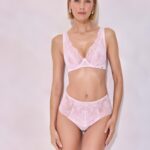 Бюстгальтер бралетт из коллекции выполнен на основе бюста с мягкими чашечками на косточках на каркасах, с дополнительными боковыми поддержками, чашки шитые из роскошного кружева с цветочным рисунком, продублированы тканью в тон. Бретельки регулируются по длине, отстгиваются на спине. На спине застжка на удлинитель, количество крючков в ряду застжки увеличивается пропорционально размеру бюстгальтера, пояс кружевной продублирован сетчатой тканью. Фурнитура металлическая. Между чашек украшение в виде красивой подвески и атласной ленты. Бюстгальтер идеально сочетается с трусиками из коллекции .Hush Blush M бралетт бюст