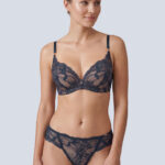 Трусики стринг из коллекции выполнены из кружева цвета . Ластовица проложена 100 хлопком телесного цвета.IndigoAffair стринги