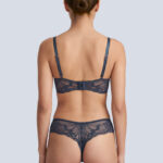 Бюстгальтер из коллекции - выполнен на основе бюста - в цвете с формованными поролоновыми чашками телесного цвета без косточек, покрытыми нежным кружевом с цветами, с дополнительными боковыми поддержками для предотвращения скручивания. Бретельки отстгиваются на спинке, регулируются по длине. На спине застжка на удлинитель, количество крючков в ряду застжки увеличивается пропорционально размеру бюстгальтера. Пояс из кружева продублирован телесной сеткой. Фурнитура металлическая цвета меди. Бюстгальтер идеально сочетается с трусиками из коллекции .IndigoAffair Super P-UP бюст