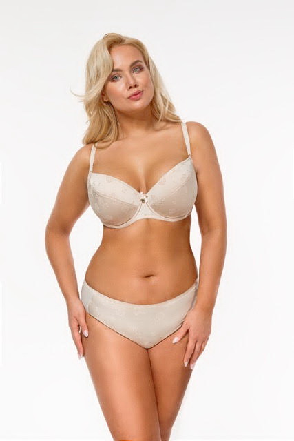 Бюстгальтер гладкий 04 , на косточках с боковыми поддержками, чашки шитые на тонком поролоне, внешняя сторона чашек гладкая с рисунком в цветочки, внутренняя сторона проложена хлопковым трикотажем. Бретельки отстгивающиеся регулируются по длине, на спине двойной удлинитель на два крючка. Фурнитура металлическая в тон ткани.
