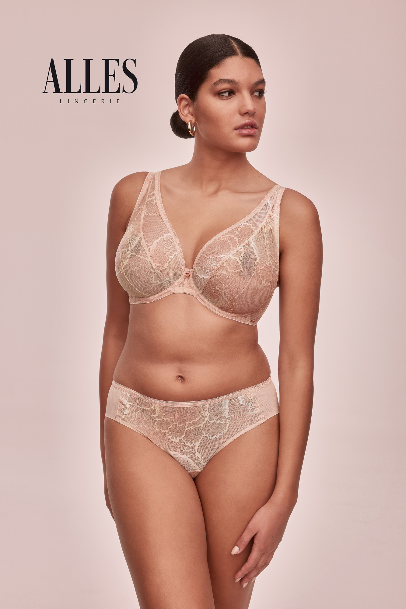 Трусики бразильяна из коллекции выполнены из эластичного двухцветного кружевного полотна и телесной сетки, кружево продублировано телесной сеткой, проймы ного на спинке из сетки, сложенной вдвое. Ластовица из 100 хлопка телесного цвета. Идеально сочетаются с бюстгальтерами .