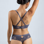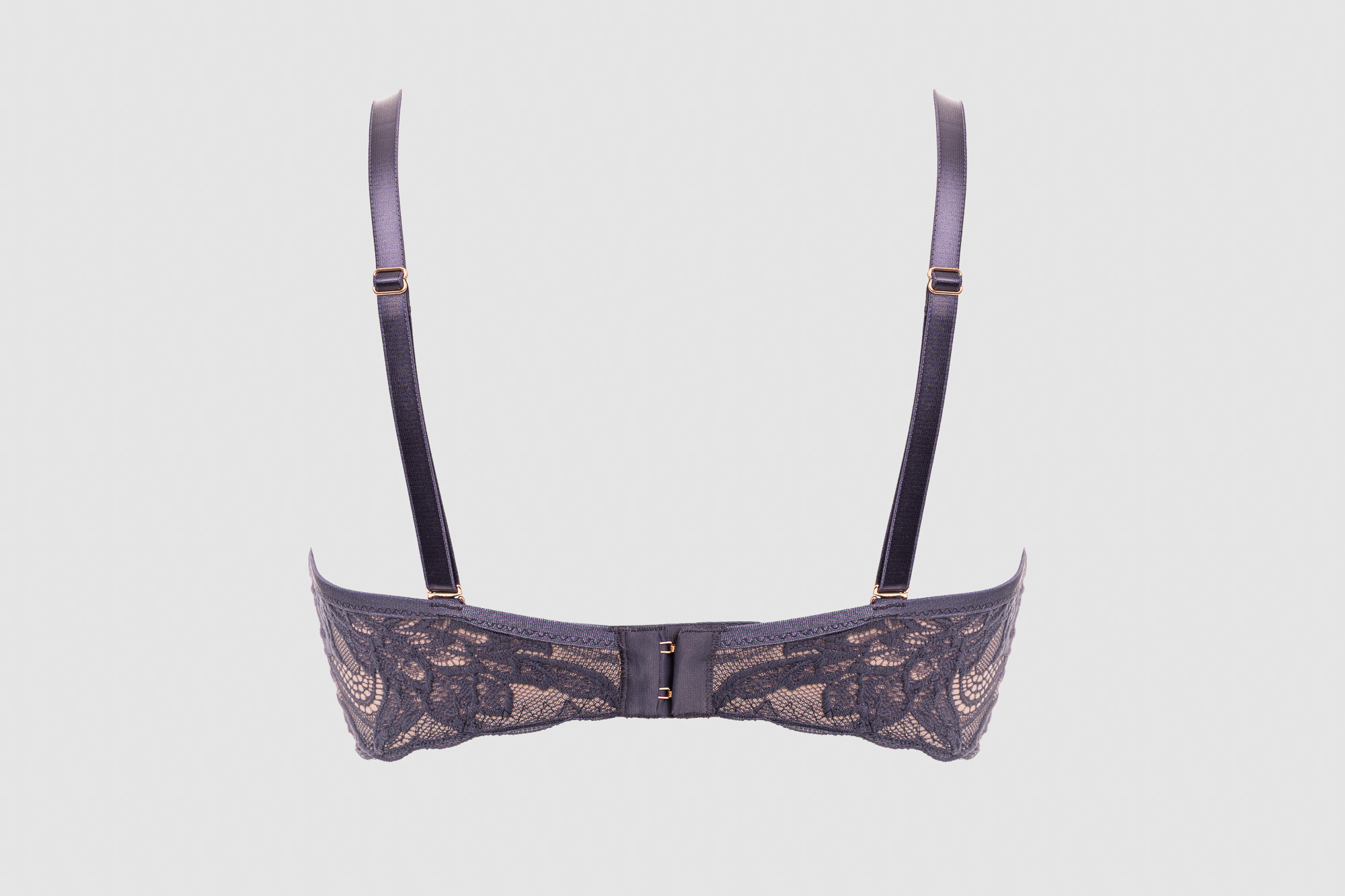 Бюстгальтер из коллекции - выполнен с формованными поролоновыми чашками телесного цвета без косточек, с дополнительными боковыми поддержками, внешняя сторона покрыта кружевом. Спинка кружевная продублирована телесной сеткой. Бретельки отстгиваются на спинке, регулируются по длине. На спине застжка на удлинитель, количество крючков в ряду застжки увеличивается пропорционально размеру бюстгальтера. Фурнитура металлическая цвета розового золота. Бюстгальтер идеально сочетается с трусиками из коллекции .LuceViola Super P-UP бюст