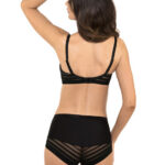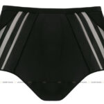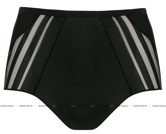 Трусики слип с высокой линией талии созданы из эластичной ткани, спереди и и на спинке вокруг ножек вставки из сетки в полоску. Ластовица из 100 хлопка.
