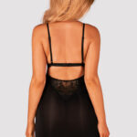 Чувственная сорочка и стринги Maderris черного цвета. Многоступенчатая застежка и регулируемые бретельки создают идеальную посадку, кружевные вставки, привлекательный блестящий кулон делают сорочку более элегантной, эластичная ткань гарантия комфорта.