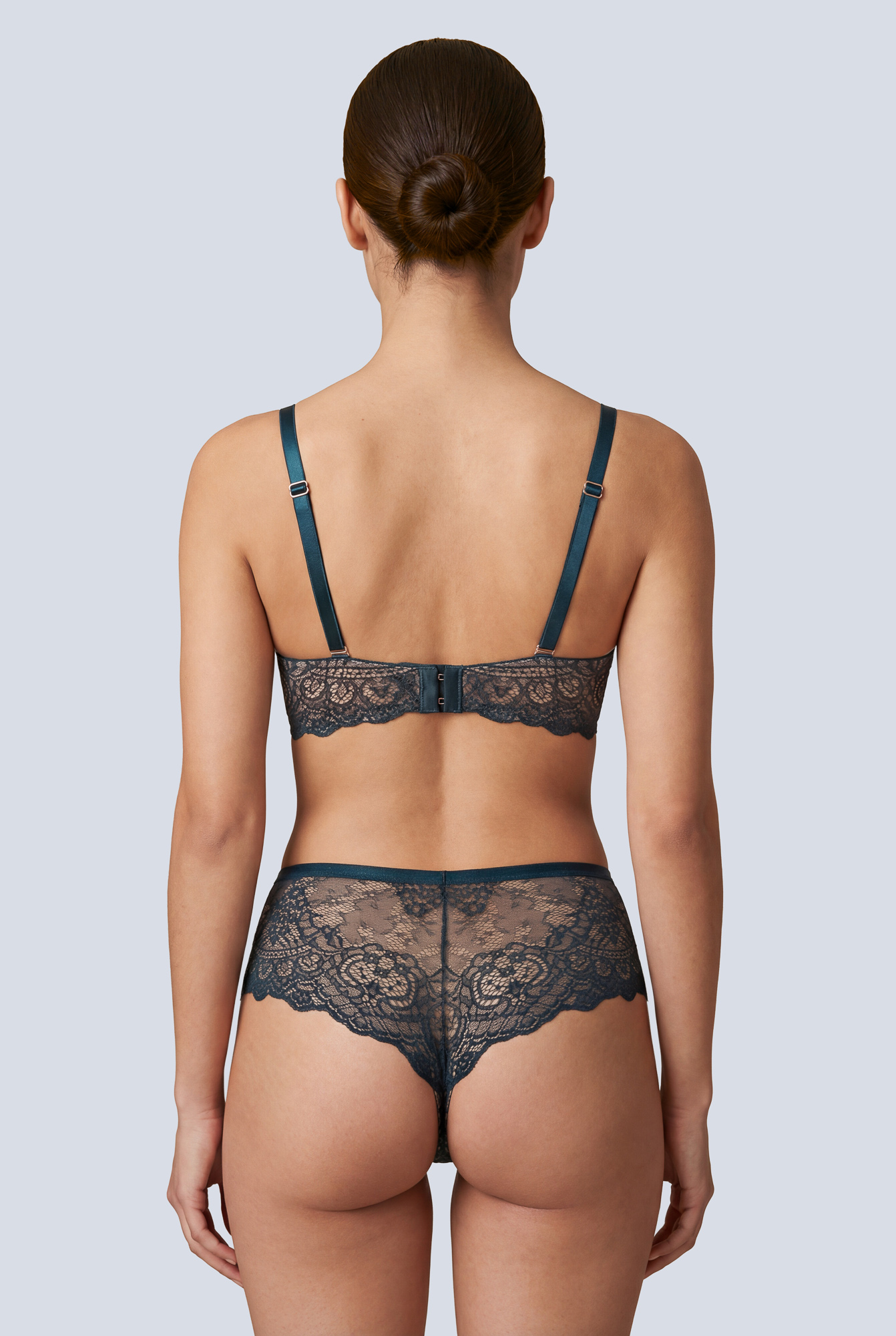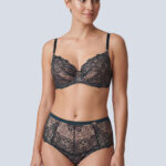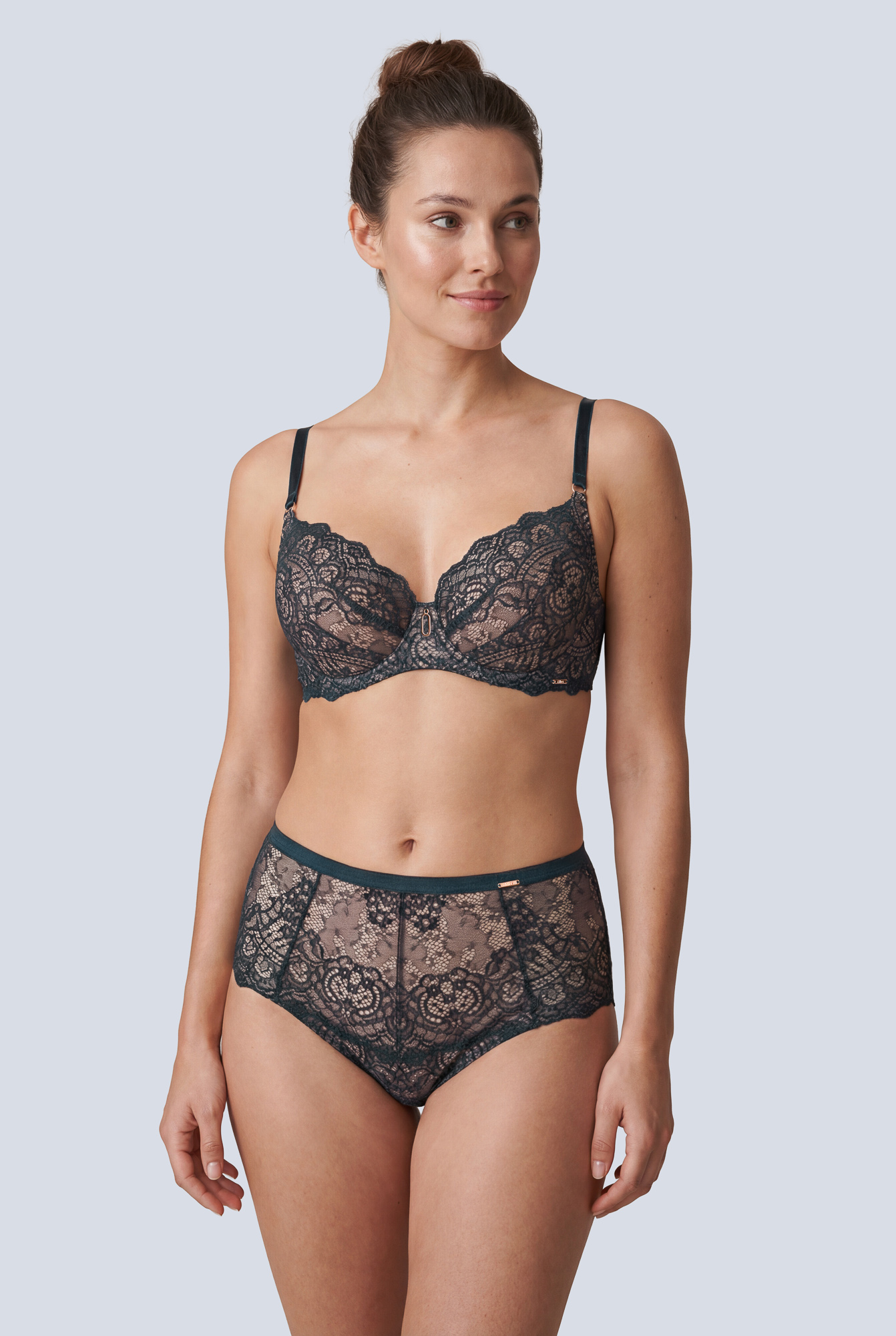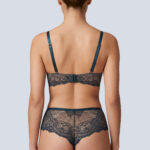 Бюстгальтер - выполнен на косточках, с дополнительными боковыми поддержками, чашки шитые на тонком поролоне, со съмными пуш-ап вкладышами, внешняя сторона из кружева. Спинка кружевная. Бретельки не отстгиваются, регулируются по длине. На спине застжка на удлинитель, фурнитура металлическая цвета меди. Бюстгальтер идеально сочетается с трусиками .Marea P-UP бюст