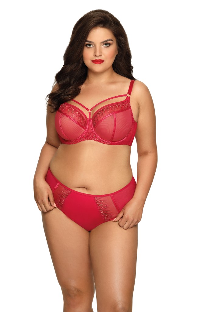 Бюстгальтер 03 красного цвета на косточках, с боковыми поддержками, чашки шитые из сетки, верхняя часть чашки из сетки с вышивкой красной и золотой нитью. Т-образный шов и окантовка косточек декорированы атласной лентой и строчками с золотой нитью. Бретельки не отстгиваются, регулируются по длине, на спине застжка - удлинитель на крючках, фурнитура металлическая цвета золота. В зоне декольте тонкие декоративные бретели. Бюстгальтер идеально комплектуется трусиками .