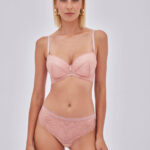 Трусики бразильяна из коллекции выполнены из роскошного кружева с цветочным рисунком и декоративной сетки, на спинке каплевидный вырез. Ластовица проложена 100 хлопком телесного цвета.NudeRose трусы бразильяна