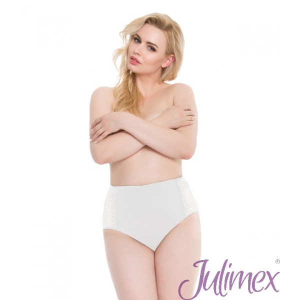 Трусы с высокой линией талии, с боковыми деталями из кружева с геометрическим узором. Ластовица проложена 100 хлопком