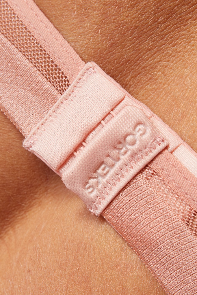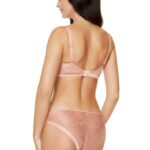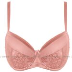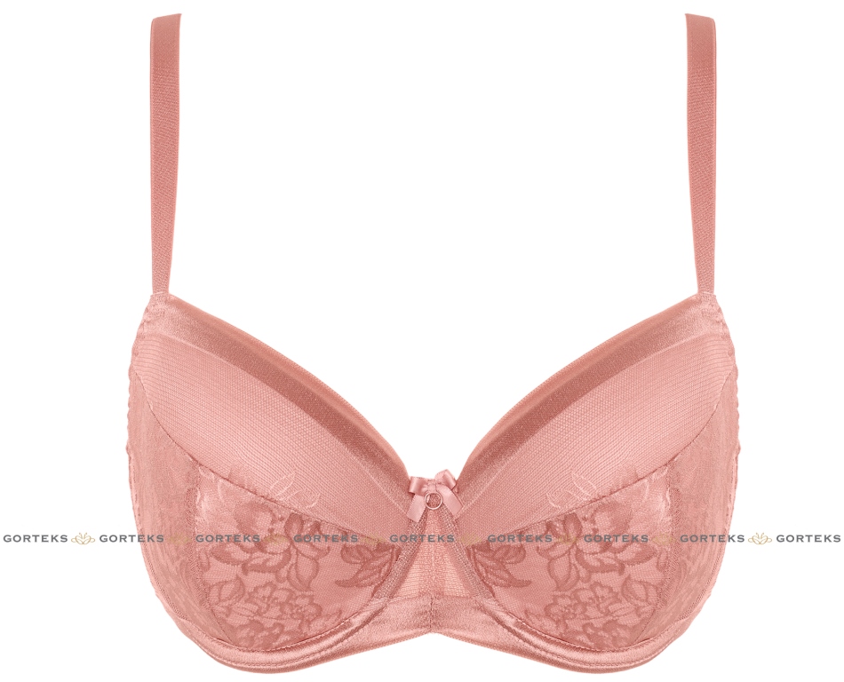 Бюстгальтер 4 на косточках, с дополнительными боковыми поддержками, чашки шитые на тонком поролоне, внутренняя сторона проложена хлопковым трикотажем, внешняя покрыта сеткой с цветочным рисунком. Бретельки не отстгиваются, регулируются по длине. На спине застжка на удлинитель. Фурнитура металлическая цвета меди. Бюстгальтер идеально сочетается с трусиками .