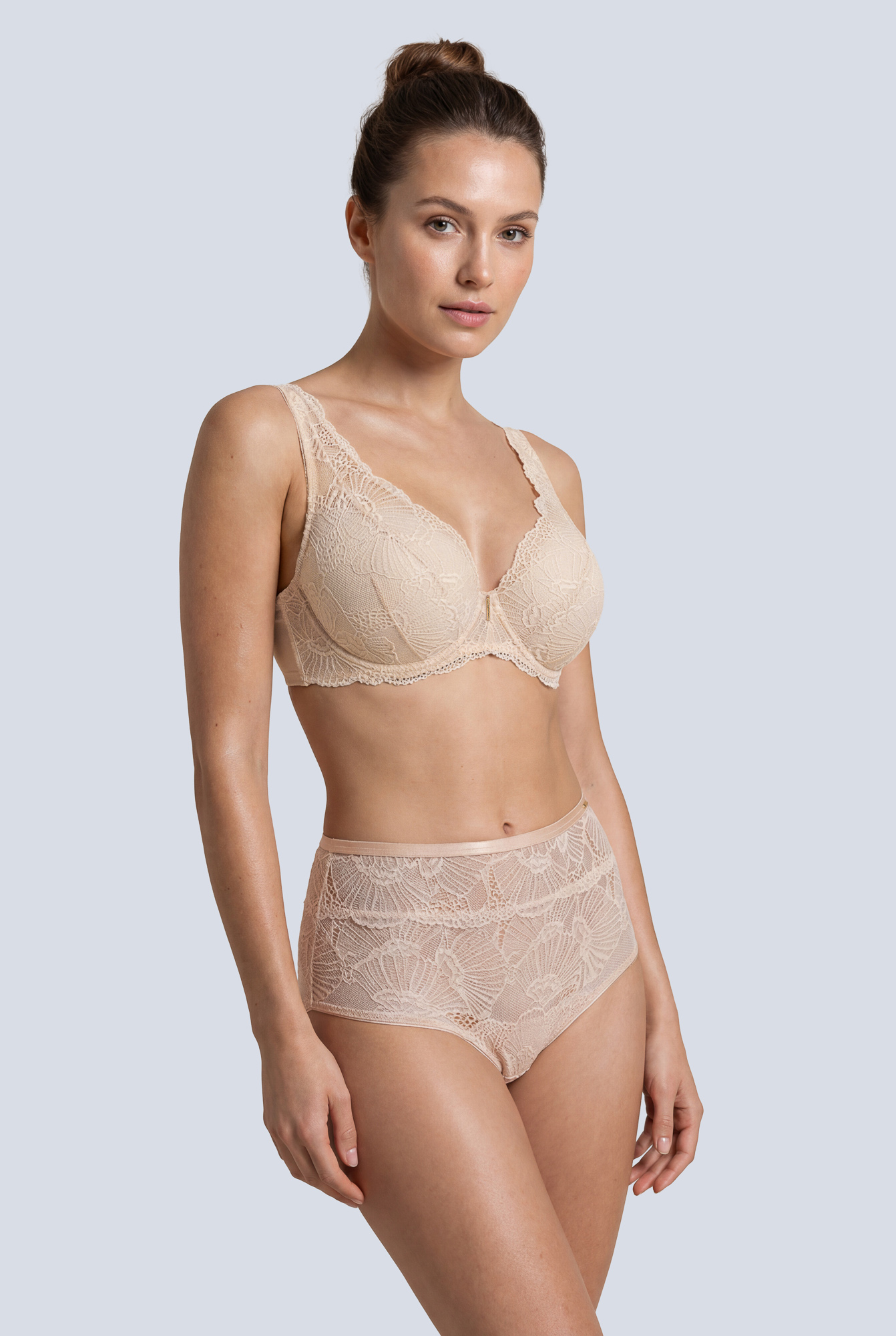 Трусики слип с завышенной линией талии из коллекции выполнены из кружева с эффектом мерцания, на спинке -образный вырез, фурнитура металлическая цвета желтого золота. Ластовица проложена 100 хлопком.PoshRoutine трусы с завышенной талией