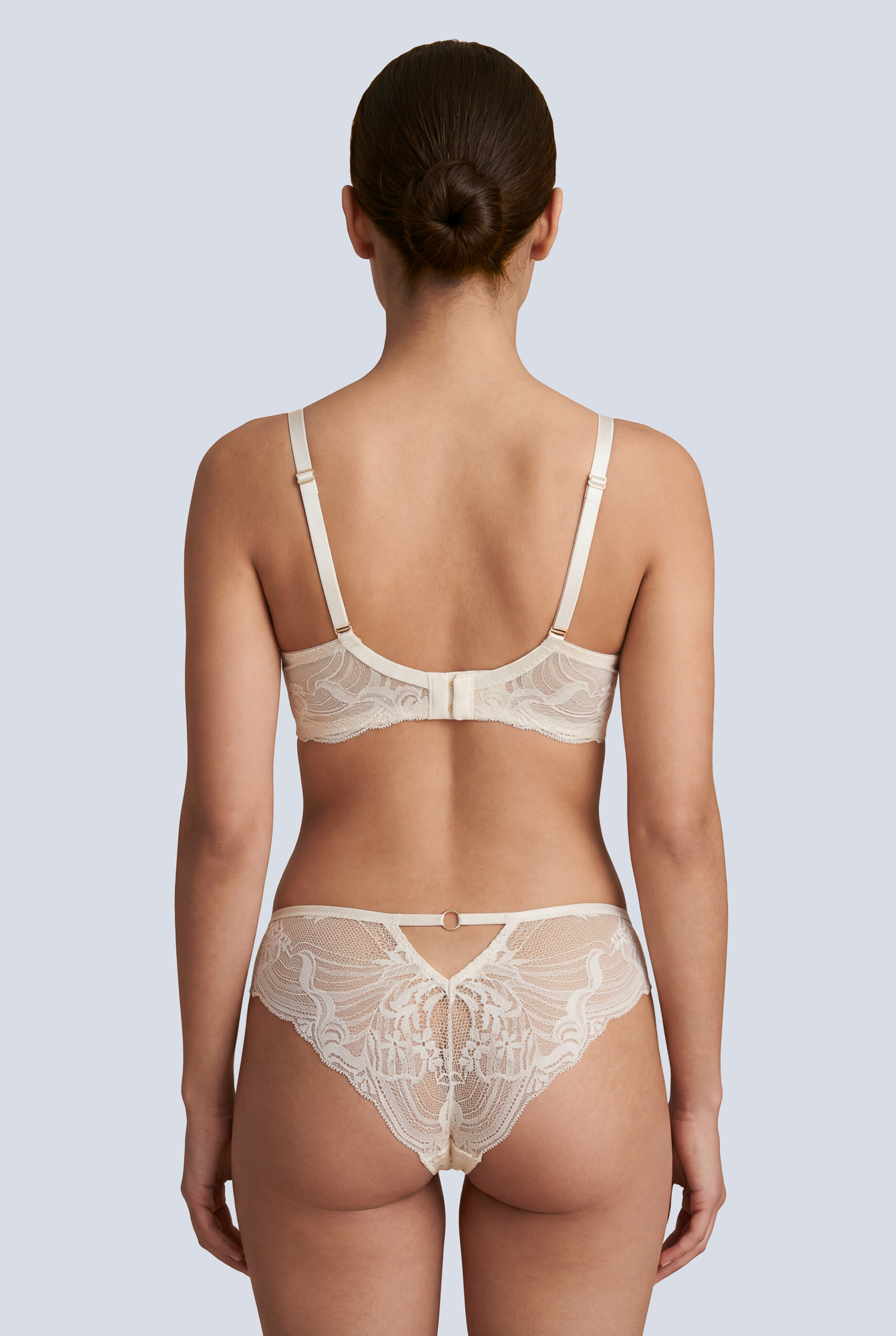 Бюстгальтер 01 - выполнен на основе бюста 01 - в цвете , на косточках, с дополнительными боковыми поддержками, чашки шитые на тонком поролоне телесного цвета, со съмными пуш-ап вкладышами, внешняя сторона покрыта нежным кружевом. Спинка из кружева продублирована сеткой. Бретельки отстгиваются, регулируются по длине. На спине застжка на удлинитель, фурнитура металлическая цвета желтого золота. Бюстгальтер идеально сочетается с трусиками .