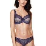 Бюстгальтер 3 на косточках, с дополнительными боковыми поддержками, чашки шитые, нижняя часть чашки с тонким поролоном телесного цвета, внутренняя сторона прошита хлопковым трикотажем, внешняя покрыта кружевом, верхняя часть чашки и спинка кружевные. Бретельки не отстгиваются, регулируются по длине, на спине застжка - удлинитель на крючках, фурнитура металлическая крашеная. Бюстгальтер идеально комплектуется трусиками .