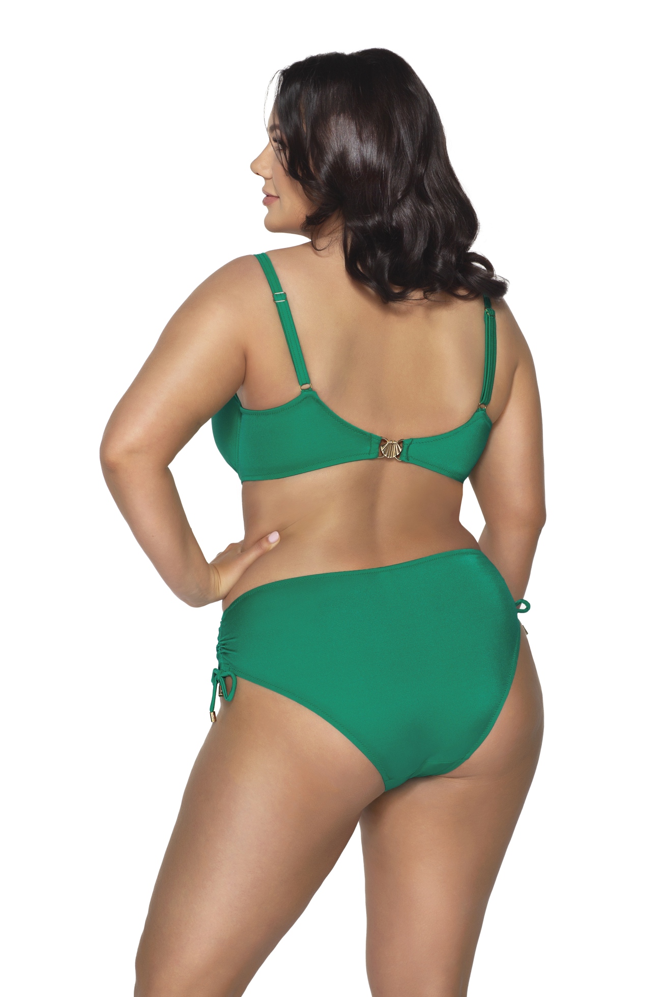 Трусы классические женские арт. 182/2 для пляжного отдыха, со средней линией талии, по бокам корректирующая высоту кулиска, фурнитура металлическая цвета желтого золота, спереди на стрейч-подкладке. Ткань с переливающимся блеском глубокого, благородного цвета нефрита дает надежду на хороший отдых. Отлично сочетаются с бюстами 182, 183.