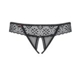 Cексуальные трусики-стринги SHIBU с открытой зоной ластовицы от европейского производителя Obsessive. Геометрический узор кружева. Эластичные полоски плотно прилегают к телу. Декоративная подвеска.
