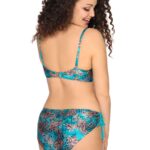 Бюстгальтер пляжный 141 из тканей-компаньонов со вставкой из ткани с медным отливом, с шитыми чашками на тонком поролоне, на косточках, тонкие бретели регулируются по длине, на спине металлическая застжка. Фурнитура цвета меди. Отлично сочетается с трусами 141/2, 142/5.