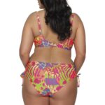 Бюстгальтер пляжный 187 в цвете флуоресцентный выполнен с шитыми чашками на тонком поролоне, на косточках, бретели регулируются по длине, на спине металлическая застжка в виде ракушки цвета меди. Бюстгальтер впечатляет своим необычным неоновым принтом, благодаря которому не нуждается в дополнительных украшениях. Комплектуется с трусами 187/2, 188/5.