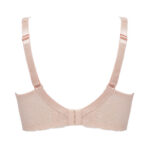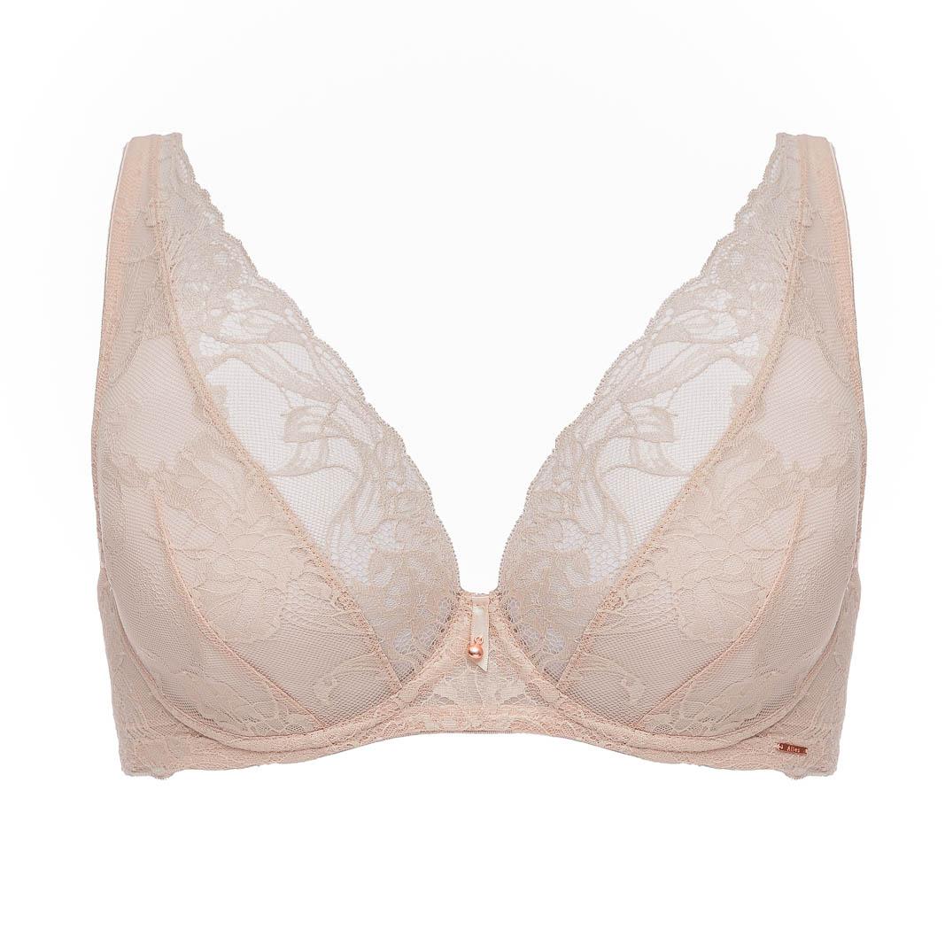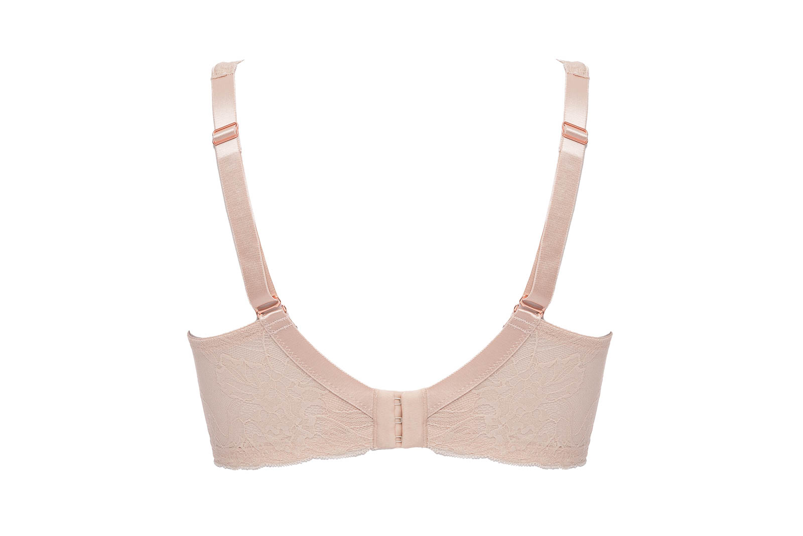 Бюстгальтер-бралетт из коллекции выполнен с мягкими, шитыми из гипюра, чашками на косточках, продублированными телесной сеткой. Пояс из гипюра продублирован сеткой. Бретельки регулируются по длине, не отстгиваются. На спине застжка на удлинитель, количество крючков в ряду застжки увеличивается пропорционально размеру бюстгальтера, фурнитура металлическая матовая цвета меди. Бюстгальтер идеально сочетается с трусиками из коллекции .Sublime M бралетт бюст (натур)