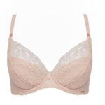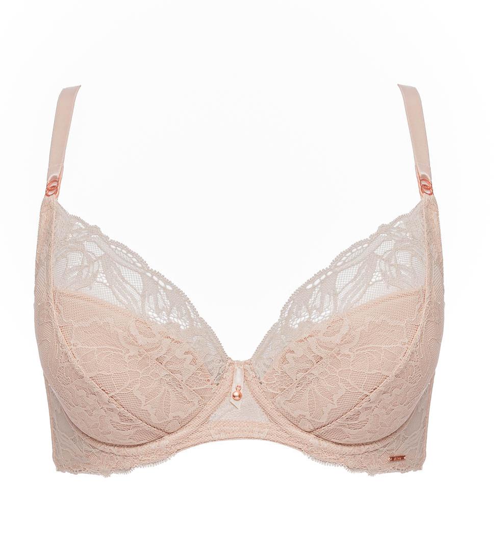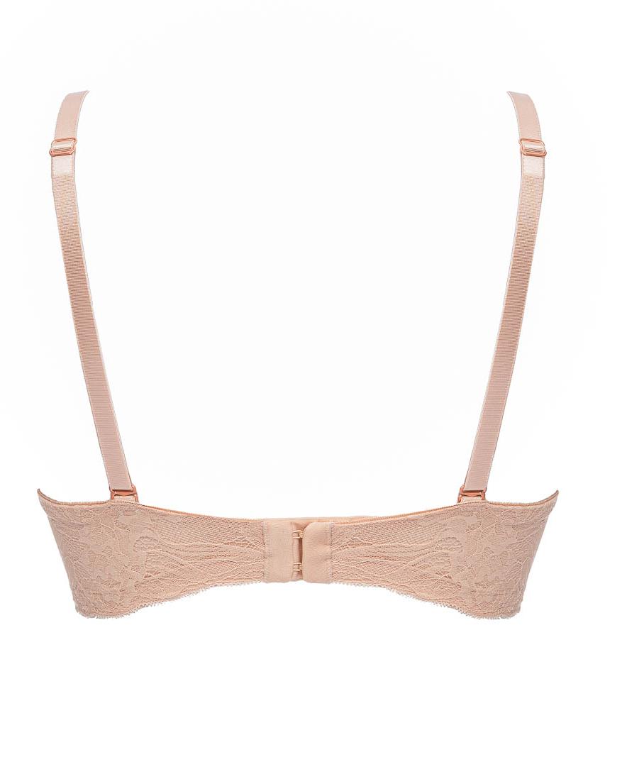 Бюстгальтер - выполнен на косточках на каркасах, с дополнительными боковыми поддержками, чашки шитые на тонком поролоне телесного цвета, со съмными пуш-ап вкладышами, внешняя сторона чашки и спинка из роскошного кружева с цветочным узором, пояс продублирован эластичной сеткой. Бретельки отстгиваются на спинке, регулируются по длине. На спине застжка на удлинитель, количество крючков в ряду застжки, увеличивается пропорционально размеру бюстгальтера, фурнитура металлическая матовая цвета меди. Между чашек украшение в виде подвески и атласной ленточки. Бюстгальтер идеально сочетается с трусиками .Sublime P-UP бюст (натур)