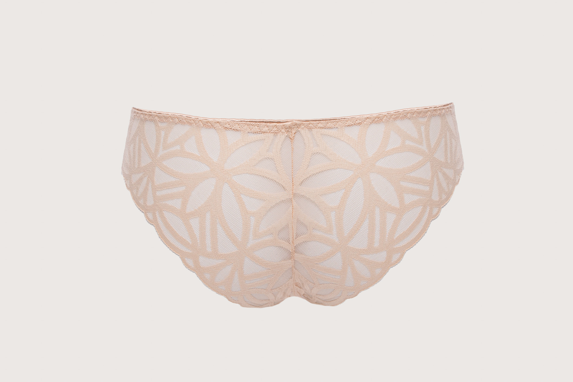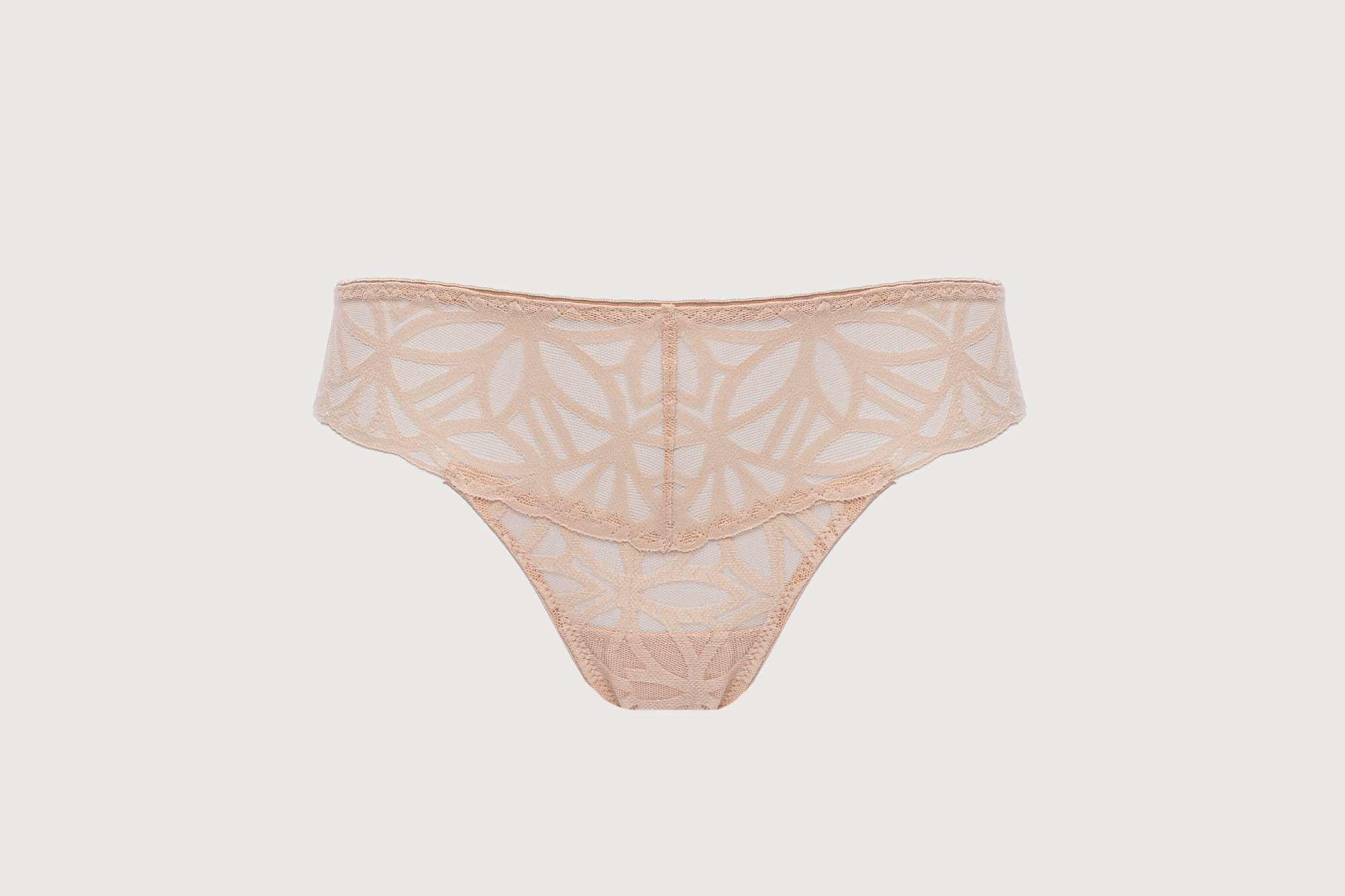 Трусики бразильяна из коллекции выполнены из роскошного кружева с геометрическим узором. Ластовица проложена 100 хлопком телесного цвета. Натуральная палитра делает бель практически невидимым на коже, а плоское плетение кружева гарантирует его незаметность под одеждой, геометрический узор кружева напоминает мягкие линии дюн, созданных из карамельно-пудрового песка.SugarDune трусы бразильяна