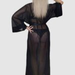 Тонкий легкий пеньюар Teona от европейского производителя Subtille. Изделие выполнено из прозрачного микротюля с атласными вставками. Высота модели 166.TEONA BLACK Пеньюар женский