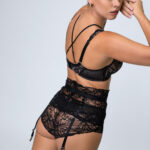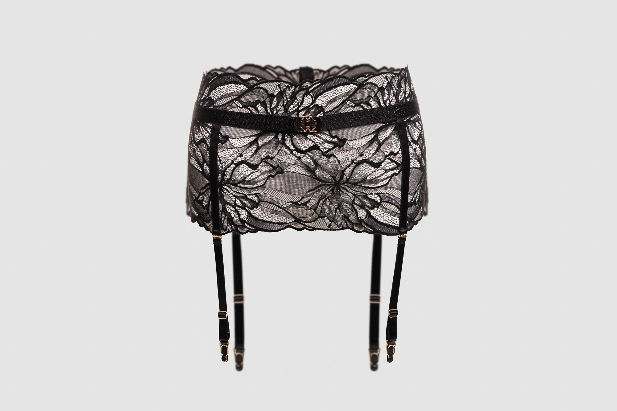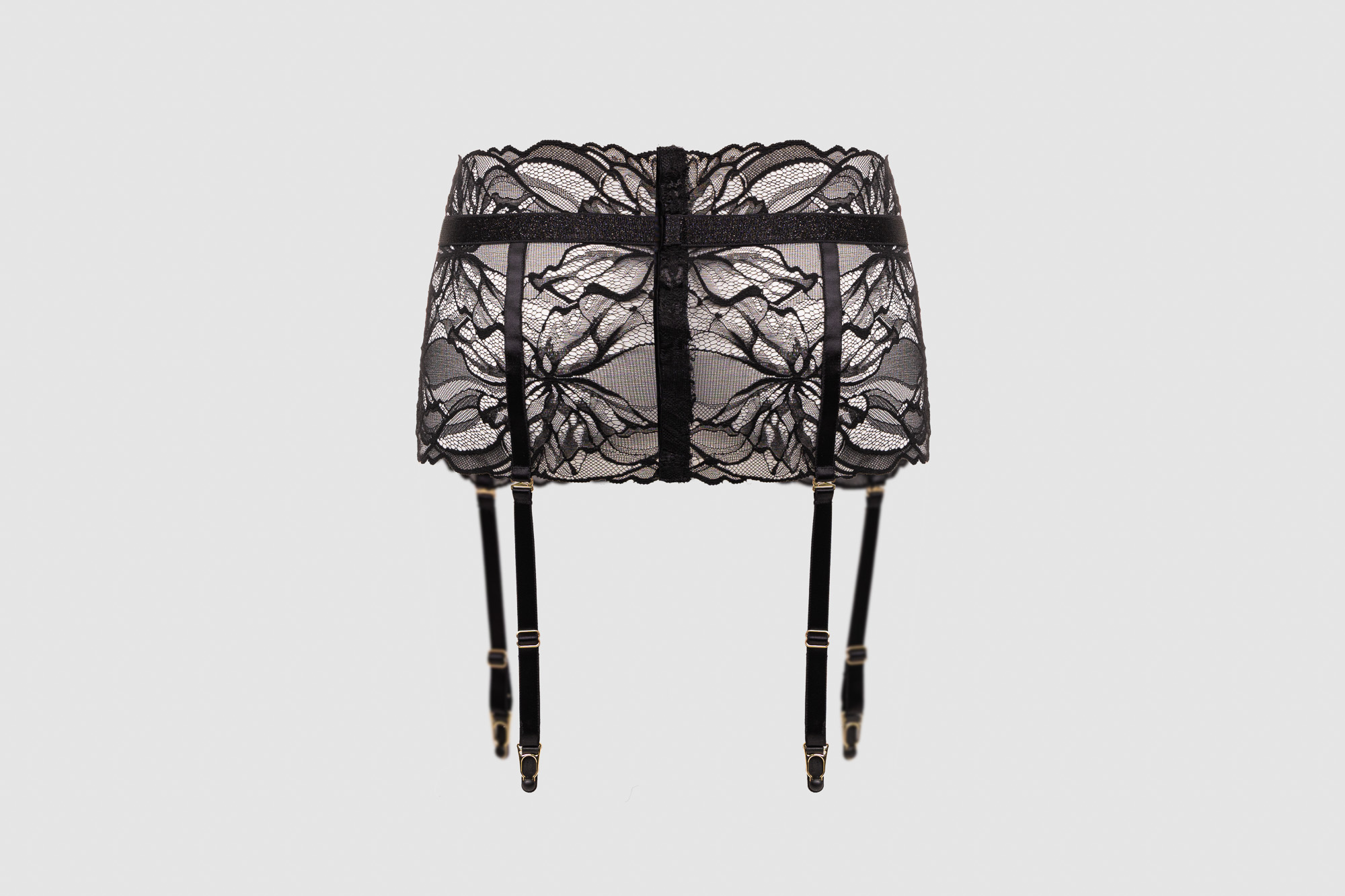 Широкий эластичный пояс из коллекции выполнен из кружевного полотна, со съемными, регулируемыми по длине, подтяжками для чулок, на спине застжка на кнопках, широкая резинка с эффектом мерцания. Фурнитура еталлическая цвета розового золота.The Icon пояс