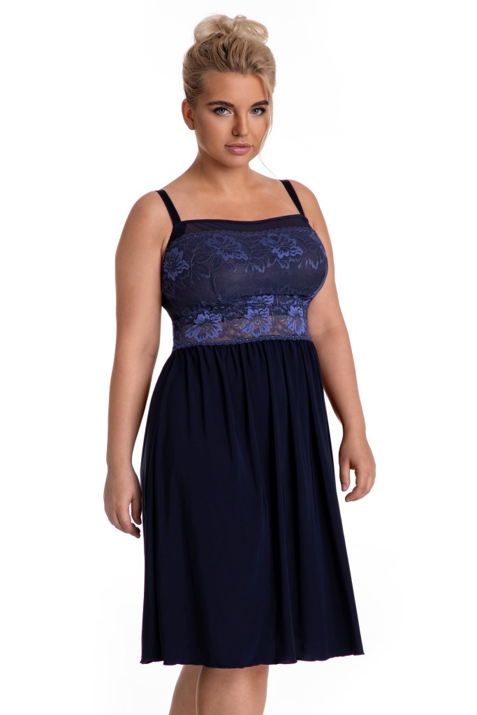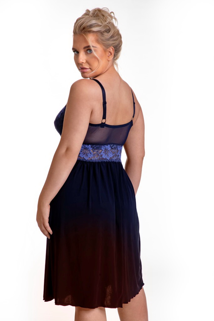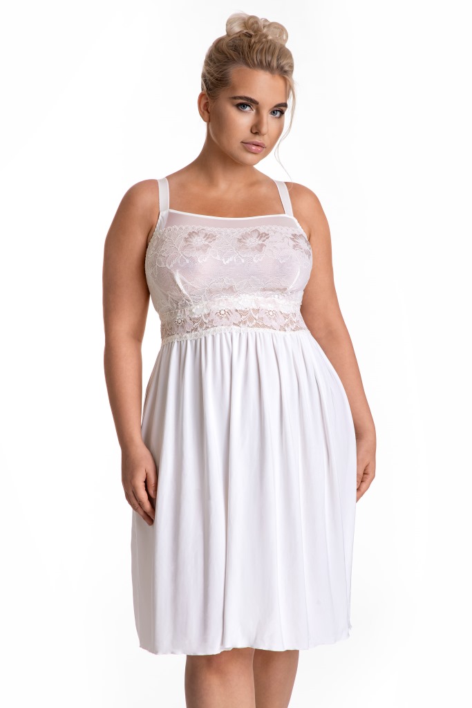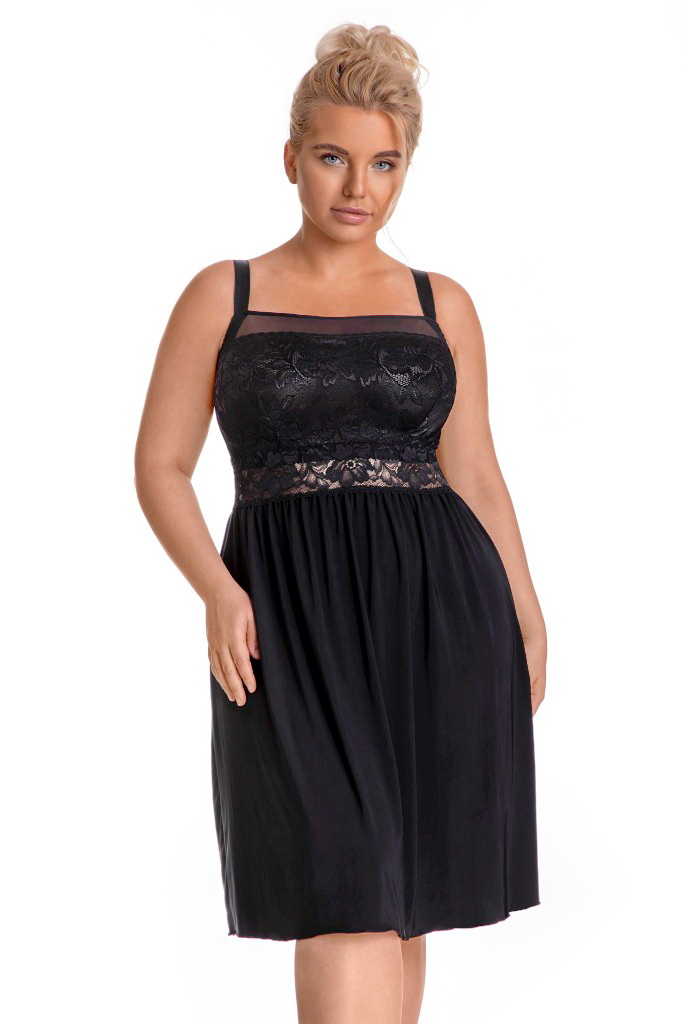 Сорочка арт. , полотно сорочки из эластичной микрофибры, лиф мягкий из кружевного полотна, спереди продублирован тканью в тон, бретели регулируются по длине, под грудью пришита широкая эластичная резинка.