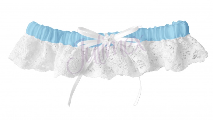 Подвязка на ногу, для ролевых игр, арт. -85 из белого кружева на голубой резинке. Идеальный вариант для невесты. В упаковке одна штука.